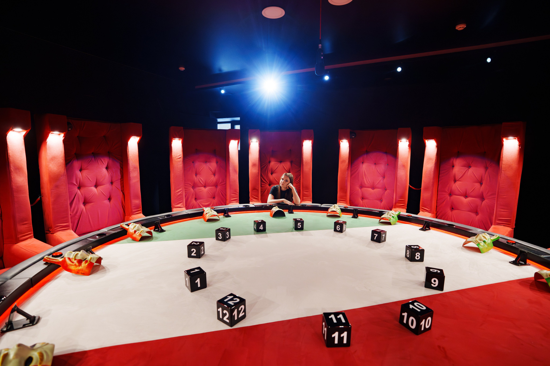 Что там происходит? Классическая Мафия, но с острой изюминкой: когда тебя выкидывают — стул внезапно падает вниз (механизм безопасный, падение с небольшой высоты, но эмоции — ураган 😂). Игроки орут, смеются, прыгают от неожиданности — дети 10–16 лет в полном восторге. Ведущий классный, роли интересные (мафия, маньяк, невидимка и т. д.), игры идут по 45 минут за раунд. Можно играть от 8 до 18 человек, максимум 12 падающих стульев.