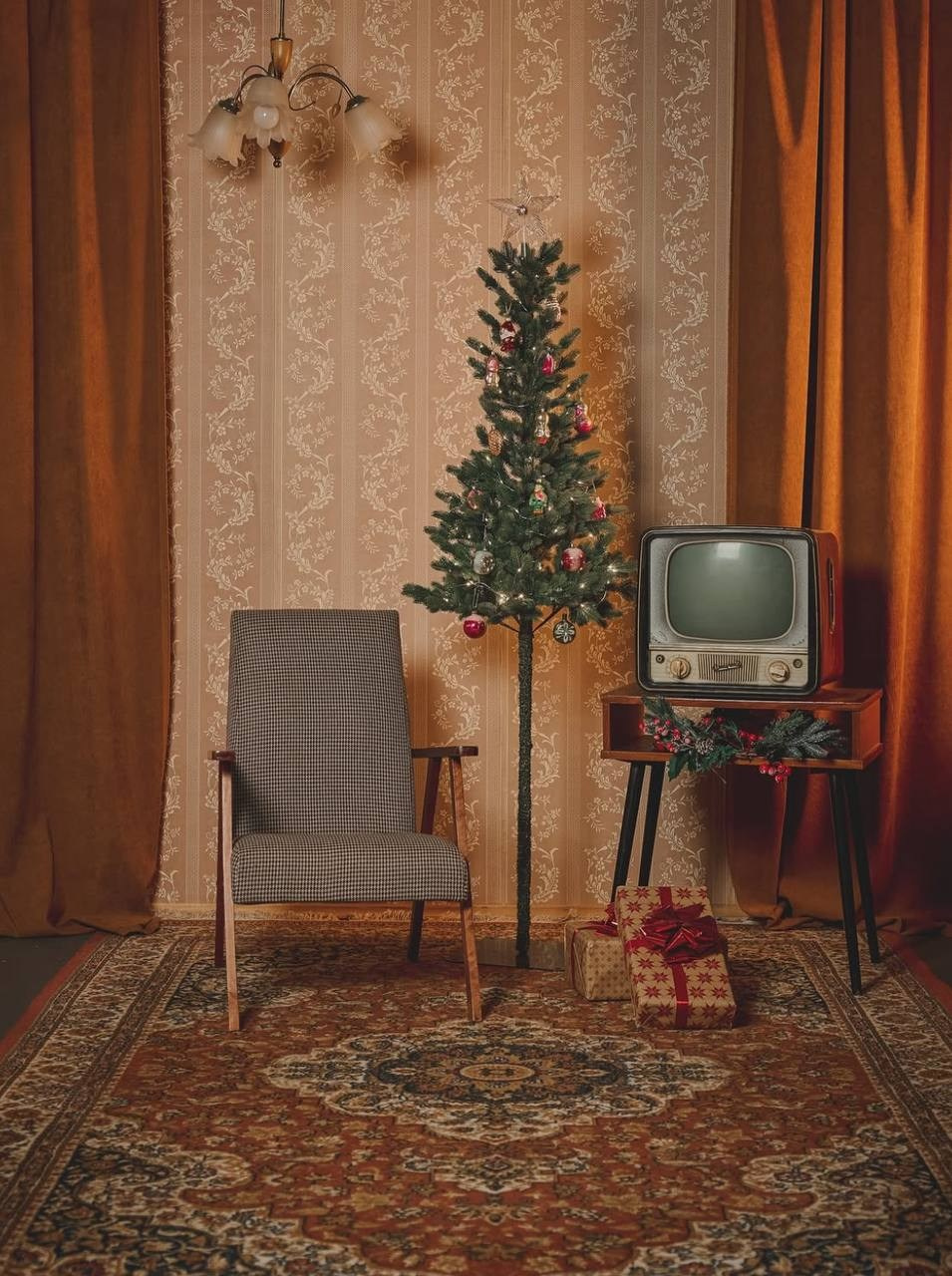 Уютный и спокойный кадр новогодней фотосессии в Ростове-на-Дону. Девочка сидит на стуле с книгой в руках, погруженная в чтение. Мягкий свет, праздничный декор и атмосфера тихого зимнего вечера создают трогательную и гармоничную картину.